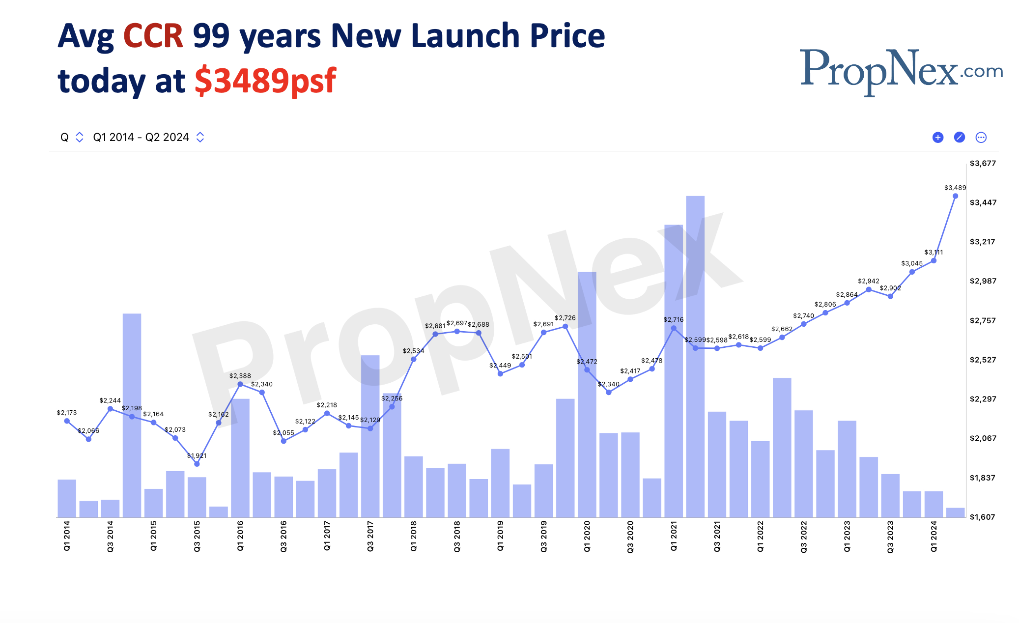 In fact, the average price of a new home in the CCR grew the most in 2024 when compared to the prices last year. It sits at an average of $3,127 psf.